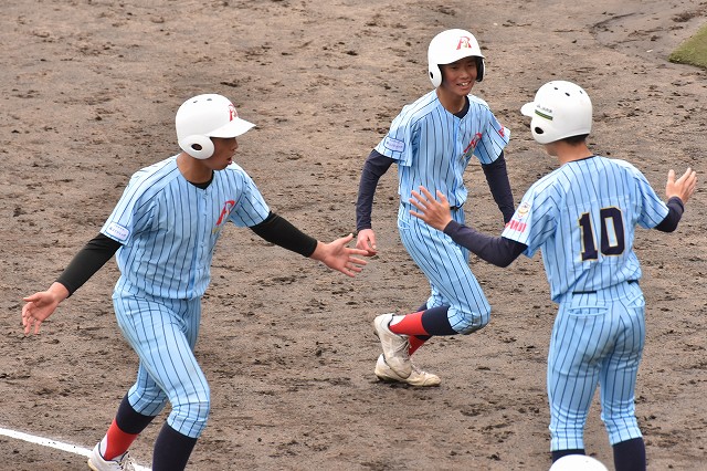 今年初めての公式戦となった春季大会1回戦。初回1点を失いますが、その後後続を断ち、後半集中打で逆転。チーム一丸の勝利でした。初めてシニアの公式戦を見る1年生も大声で応援してくれ、グラウンド整備もダッシュで取り組むなど、勝利に貢献してくれました。
