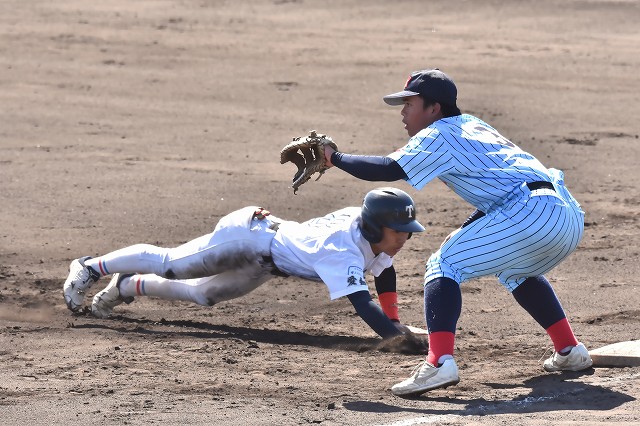 ピッチャーの吉田君と笈田君が粘りの投球を見せ、全員全力プレーで東海の横綱豊田シニアにぶつかっていきました。2回にヒットが繋がり2点を先制すると中盤までは押せ押せの展開に。しかし後半タイブレイクまでもつれ、惜しくも敗北しました。どれだけ選手たちが勝ちたかったかは、試合後の悔し涙を見ればわかりました。この悔しさを夏の選手権で必ず晴らしていこう。